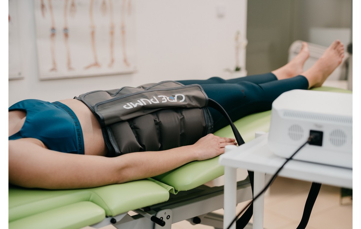 Sprawdzi się również jako element uzupełniający do zabiegu drenażu limfatycznego kończyn dolnych. Zgodnie z metodyką wykonywania manualnego drenażu limfatycznego zabieg rozpoczyna się od opracowania miejsc znajdujących się w okolicy węzłów chłonnych. W przypadku kończyny dolnej będą to węzły pachwinowe oraz węzły w obrębie stawu biodrowego. Ma to na celu udrożnienie węzłów, które są odpowiedzialne za filtrację limfy i wytwarzanie przeciwciał. Aby zwiększyć efektywność zabiegu mechanicznego drenażu limfatycznego kończyn dolnych warto rozpocząć więc od użycia mankietu na biodra i brzuch. Kolejnym etapem jest właściwy masaż drenujący.