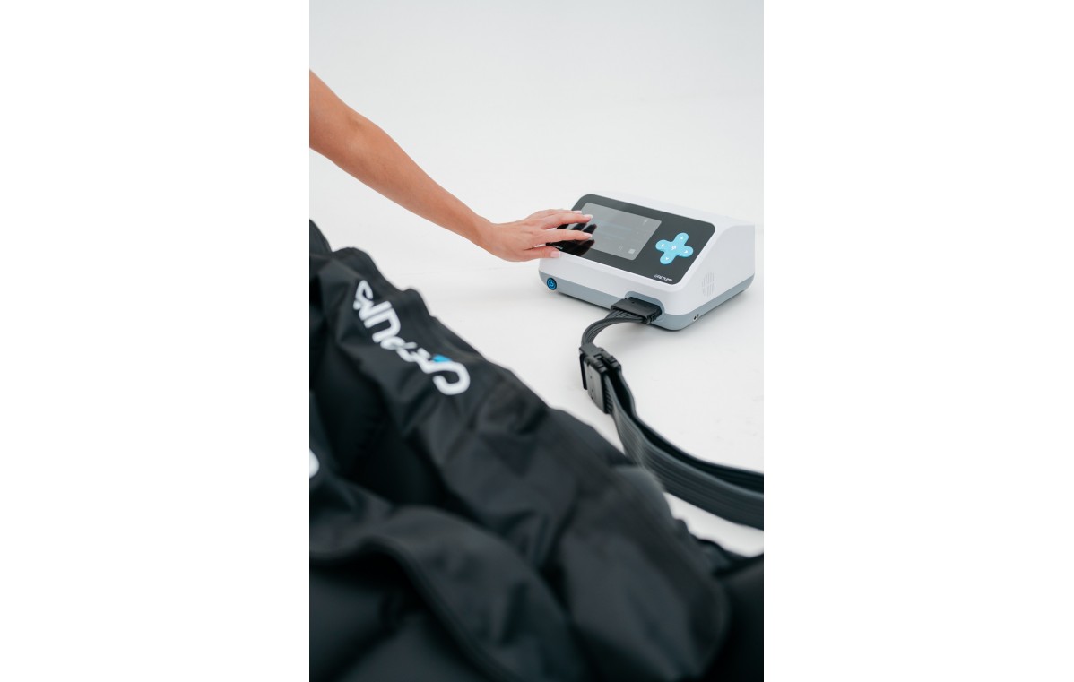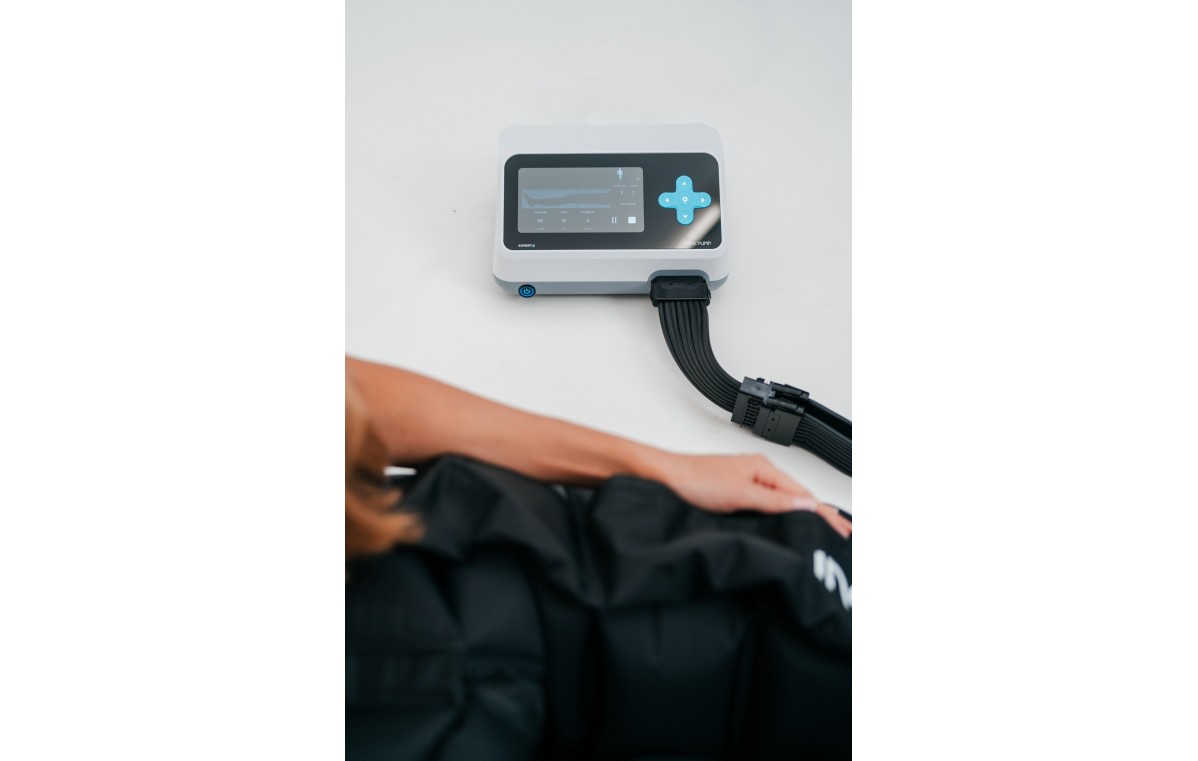 Cena obejmuje: aparat do presoterapii 8-komorowy Expert8, kabel zasilający, 2x 8-komorowe mankiety na nogi, rozdzielacz/przedłużacz przewodów powietrznych (długi, 150 cm).
